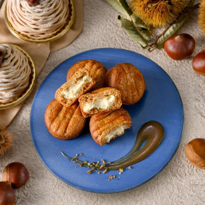 優しい栗の甘さのガレットクッキーと、なめらかなホワイトチョコ。モンブランケーキを思わせる贅沢な味わいです。