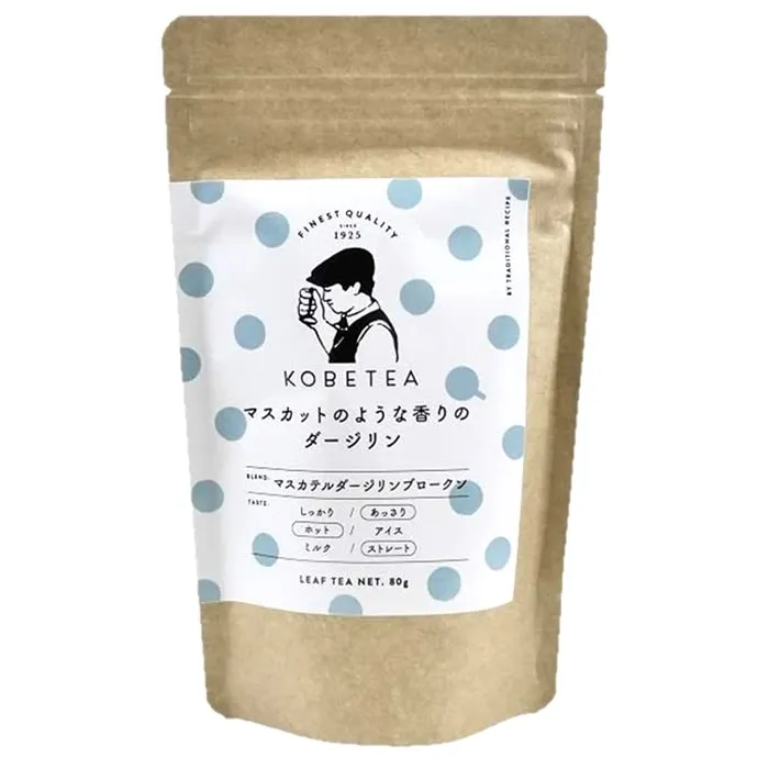 神戸紅茶の紅茶鑑定士セレクションリーフシリーズ。マスカテルダージリンブロークンは「マスカットのような」香りが特徴です。ダージリンセカンドフラッシュの時期に摘まれた 小さな葉だけをブレンドしました。甘い「マスカットのような」香りが特徴です。 ダージリンのクオリティーシーズンである「セカンドフラッシュ」に摘まれた茶葉は 旨味、渋味、甘みのすべてを兼ね備えています。 紅茶鑑定士の磨かれたブレンド力で出来上がったブレンドティーです。 ぜひストレートでお楽しみください。 紅茶鑑定士の「検茶の様子」をテーマにデザインされたパッケージ。 一見水玉模様にも見えますが、紅茶鑑定士が検茶の時に使用する茶器をイメージしています。ひとつだけ形の違う検茶カップが隠れています。今までの神戸紅茶にはなかった、とても可愛い&おしゃれなパッケージに仕上がっています。 人気の神戸紅茶はおみやげギフトシーブランド神戸の通販サイトにて絶賛販売中です!