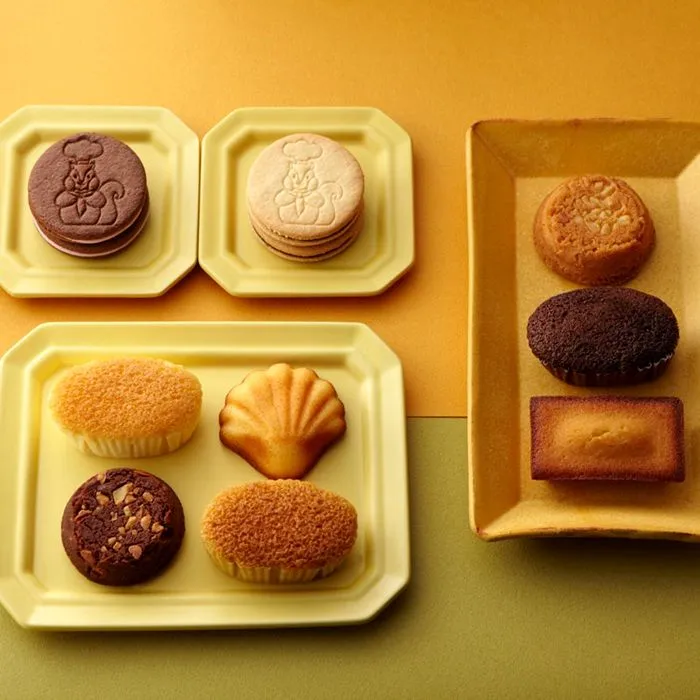セット内容:スフレ(フロマージュ):2個、シン・マドレーヌ、ガレット(バニラ)、ガレット(チョコ)、スフレ(ショコラ、キャラメル)、チョコキャラメルサンド(プレーン)、チョコキャラメルサンド(ストロベリー):各1個)