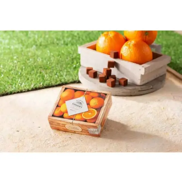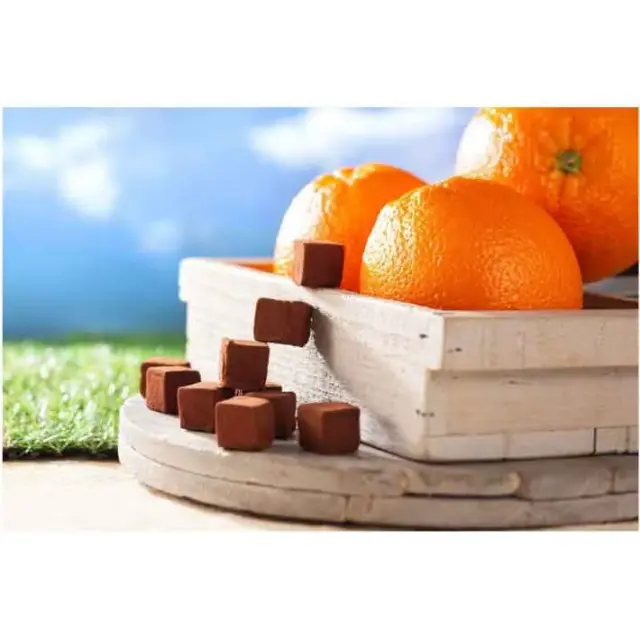 数種のチョコレートの中に、オレンジのペーストを練り込みました。口の中で溶けていくチョコレートとともに、爽やかな柑橘の香りが口いっぱいに広がります。