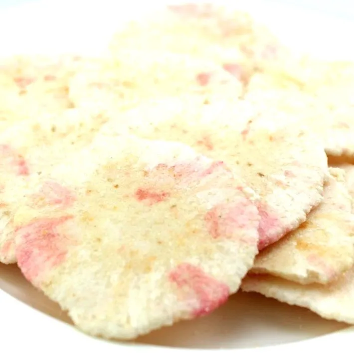原材料名:(明石鯛)馬鈴薯澱粉、甘薯澱粉、植物油脂、明石の鯛、海老、砂糖、食塩、醤油加工品(生姜醤油)、調味料(アミノ酸等)、着色料(ベニコウジ)、膨張剤、甘味料(ステビア)(原材料の一部に小麦・大豆を含む)