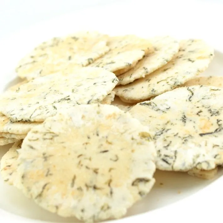 (明石のり)馬鈴薯澱粉、甘薯澱粉、植物油脂、醤油、海老、砂糖、食塩、刻み海苔、カツオパウダー、調味料(アミノ酸等)、膨張剤、甘味料(ステビア) (原材料の一部に小麦・大豆を含む)
