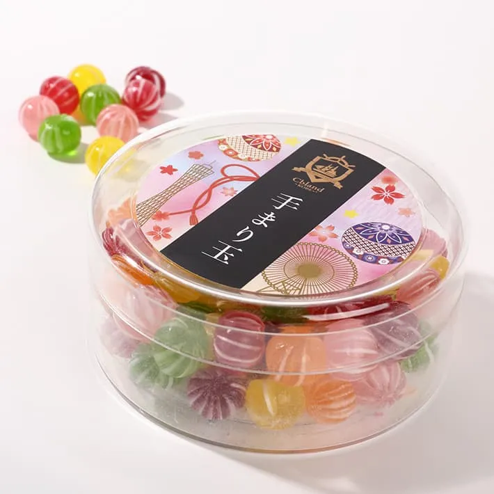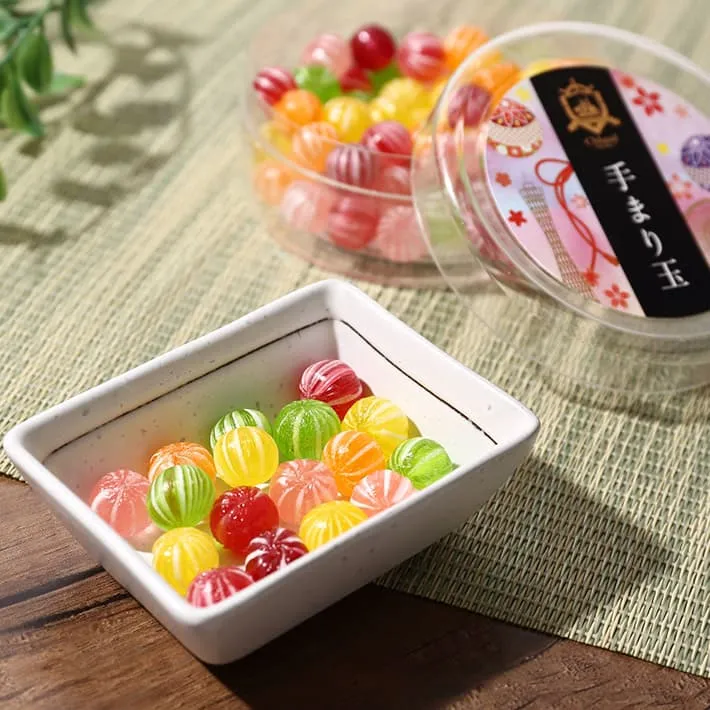 (飴)てまり玉:砂糖(国内製造)、水飴/酸味料、香料、着色料(クチナシ色素・果実色素、紫コーン色素、赤キャベツ色素、黄5、黄4、青1)、りんご玉:砂糖(国内製造)、水飴/酸味料、香料、着色料(紫コーン色素、黄4、青1)