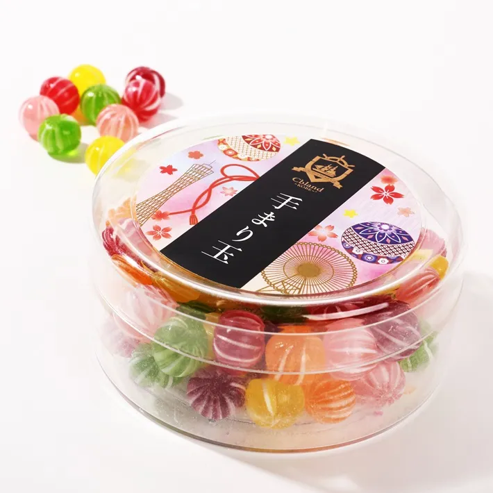 てまり柄の色鮮やかなフルーツ飴の詰合せ!インスタ映えするかわいいキャンディ。高級感漂うオリジナルラベルでギフトにもお薦めです。