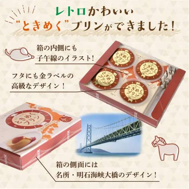 明石子午線 ときめくプリン 4個入 洋菓子 ぷりん 焦がし みたらし団子風味 ご当地限定 美味しい なめらか 常温 賞味期限 お中元 お歳暮 誕生日 プレゼント ギフト 通販 人気 ランキング